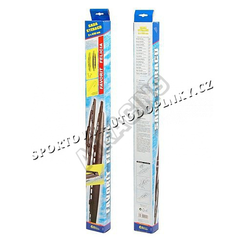 Sada dvou stěračů (řidič + spolujezdec), optimalizovaná pro vozy Škoda Felicia. Stěrač určený k montáži před řidičem se spoilerem. Stěrač určený k montáži před spolujezdcem je prohnutý. Zajišťuje dokonalé stírání i na zakřivené části skla na straně spolujezdce. Kvalitní vícevahadlová nýtovaná konstrukce ramena stěrače. Balení obsahuje stěrač se spoilerem 510 mm (20") + stěrač 510 mm (20") + univerzální adaptéry pro montáž.