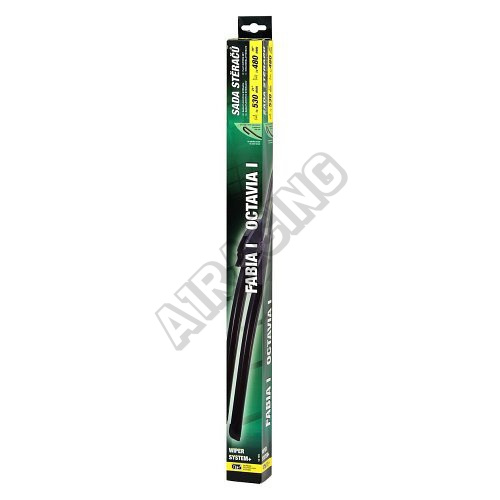 Tato sada stěračů je vhodná pro vozy Škoda FABIA I a OCTAVIA I. Kvalitní pružný člen plochého stěrače zajišťuje stejnoměrný tlak grafitového břitu v celé jeho délce, což zamezuje rozmazávání nečistot a vytváření pruhů.