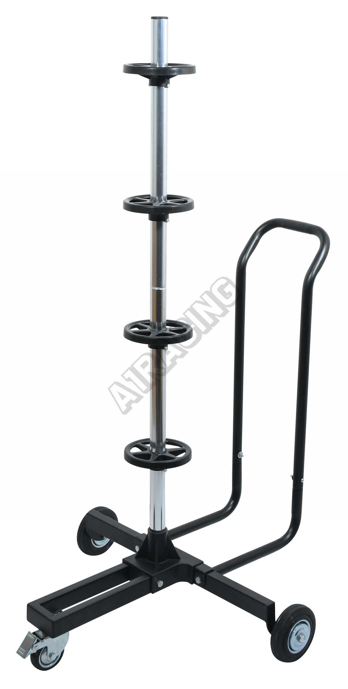 Držák zabírá jen velmi málo místa a je opatřen kolečky pro usnadněnou manipulaci. Kolečka jsou gumová a jsou opatřena kovovým středem a kuličkovými ložisky. Jedno z koleček je navíc bržděné, držák se tak nechtěně nepohybuje.