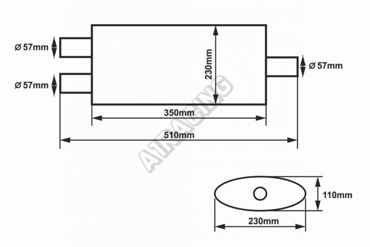 Středový tlumič 57mm SLIDE 304SS 350mm
