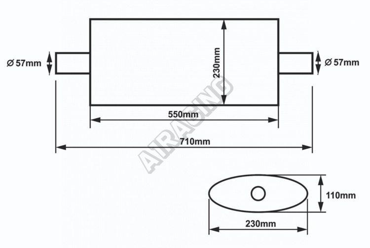Středový tlumič 57mm SLIDE 304SS 550mm