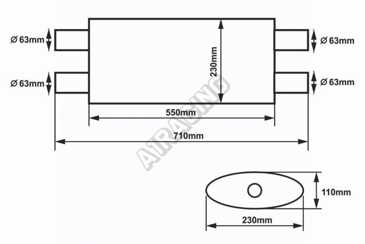 Středový tlumič 63,5mm SLIDE 304SS 550mm