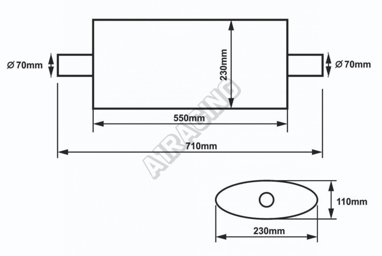 Středový tlumič 70mm SLIDE 304SS 550mm