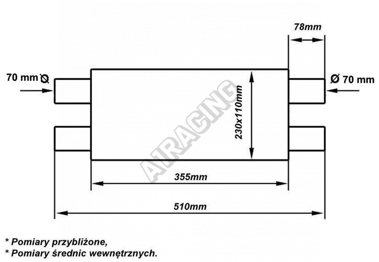 Všechny rozměry tlumiče jsou uvedeny na fotografii v galerii.