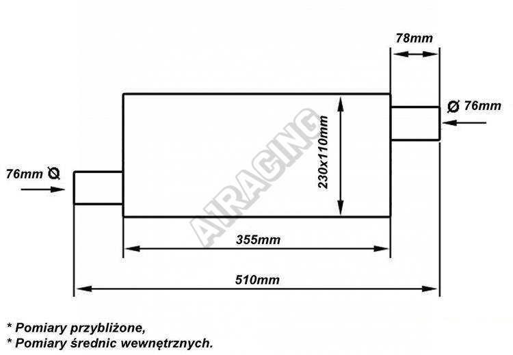 Všechny rozměry tlumiče jsou uvedeny na fotografii v galerii.
