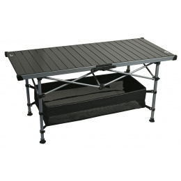 Stůl je opatřen lamelovou Alu plochou s rozměry 123 x 55 cm ve výšce 57 cm a nabízí maximální nosnost až pro 100kg vybavení, potravin apod.