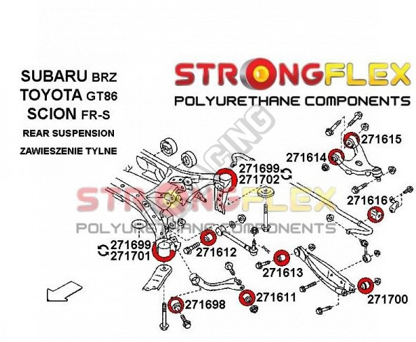 Subaru BRZ StrongFlex Sport (tvrdost 90ShA) kompletní sestava silentbloků na celé auto obsahuje :