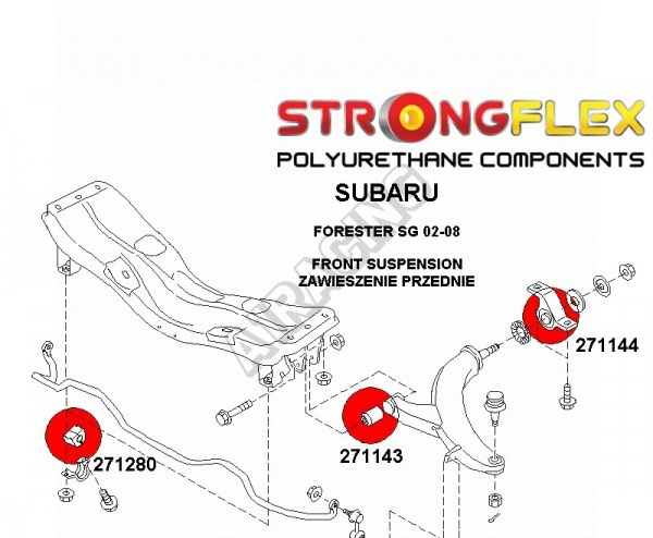 Subaru Forester do 2002-08 SG StrongFlex (tvrdost 80ShA) kompletní sestava silentbloků na celé auto obsahuje :