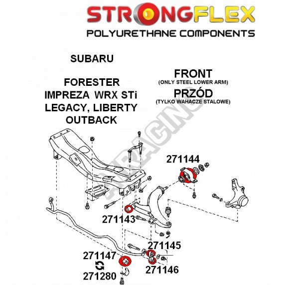 Subaru Forester do 2006 SF StrongFlex Sport (tvrdost 90ShA) kompletní sestava silentbloků na celé auto obsahuje :