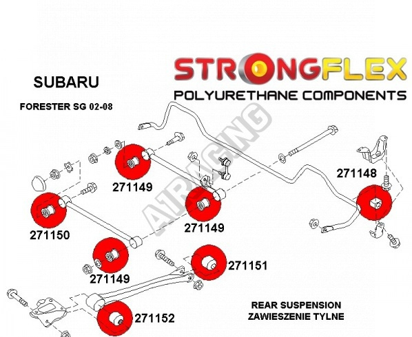 Subaru Forester do 2006 SG StrongFlex Sport (tvrdost 90ShA) kompletní sestava silentbloků na celé auto obsahuje :