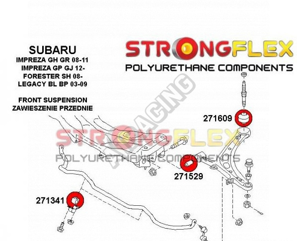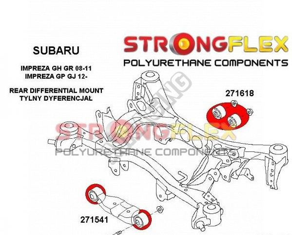Subaru Impreza 2001+ GH GR StrongFlex (tvrdost 80ShA) kompletní sestava silentbloků na celé auto obsahuje :