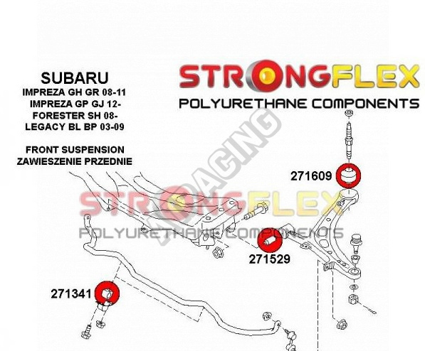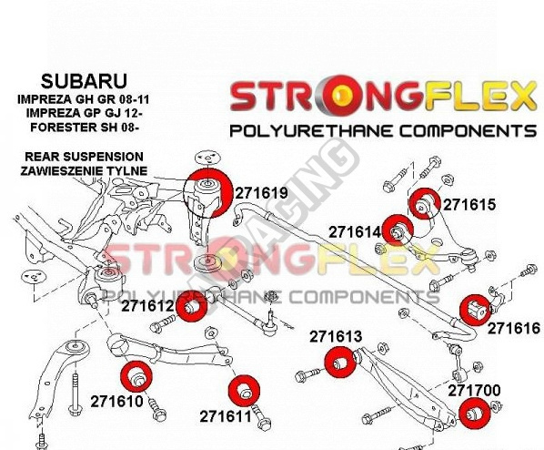 Subaru Impreza 2001+ GP GJ StrongFlex Sport (tvrdost 90ShA) kompletní sestava silentbloků na celé auto obsahuje :