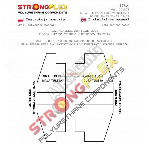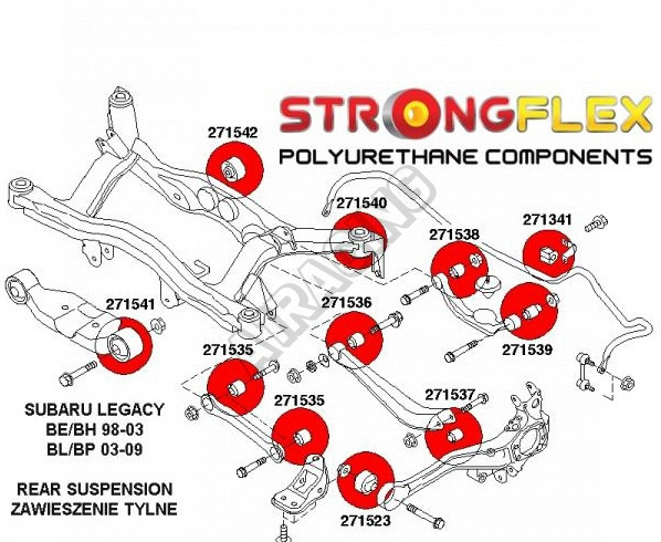 Subaru Legacy do 2006 BE BH StrongFlex (tvrdost 80ShA) kompletní sestava silentbloků na celé auto obsahuje :