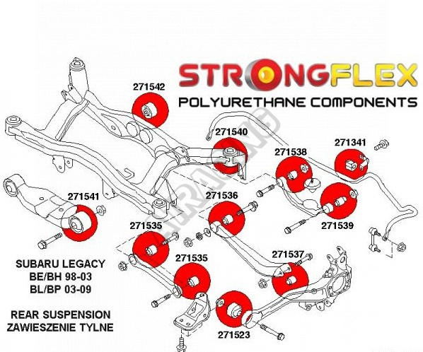 Subaru Legacy do 2006 BE BH StrongFlex Sport sestava silentbloků jen pro zadní nápravu 16 ks obsahuje: