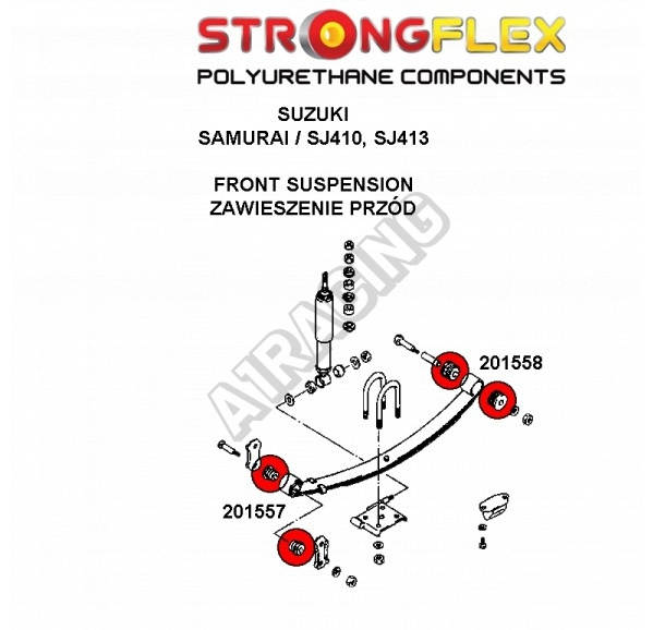 Suzuki Samurai StrongFlex sestava silentbloků pro přední a zadní nápravu 12 ks obsahuje:
