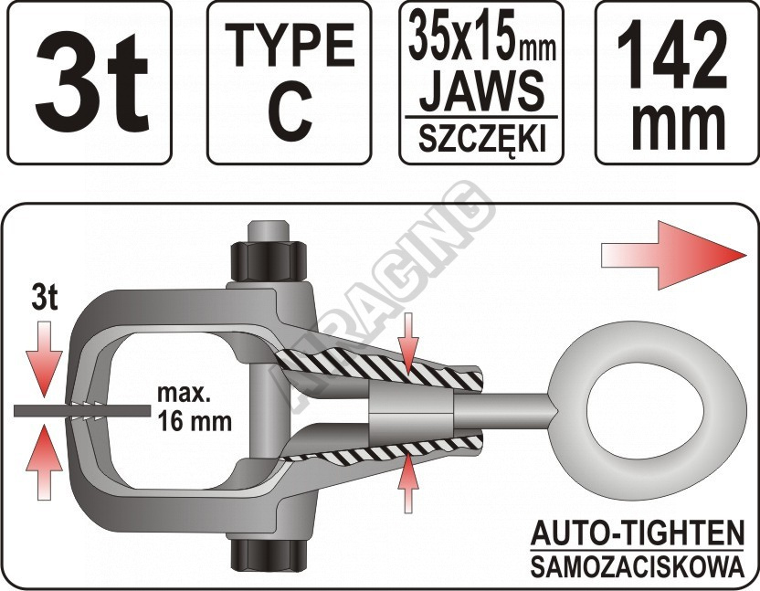 Recenze k produktu Svěrka karosářská samosvorná k tahání typ C, 3t 142mm