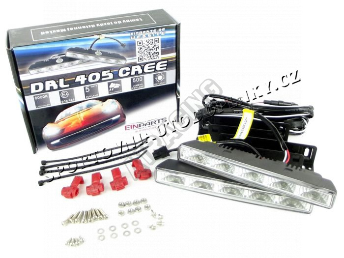 Světla pro denní svícení 2x5W CREE velkých led, šířka/výška 181X21 mm - přední LED světla s EU i RL