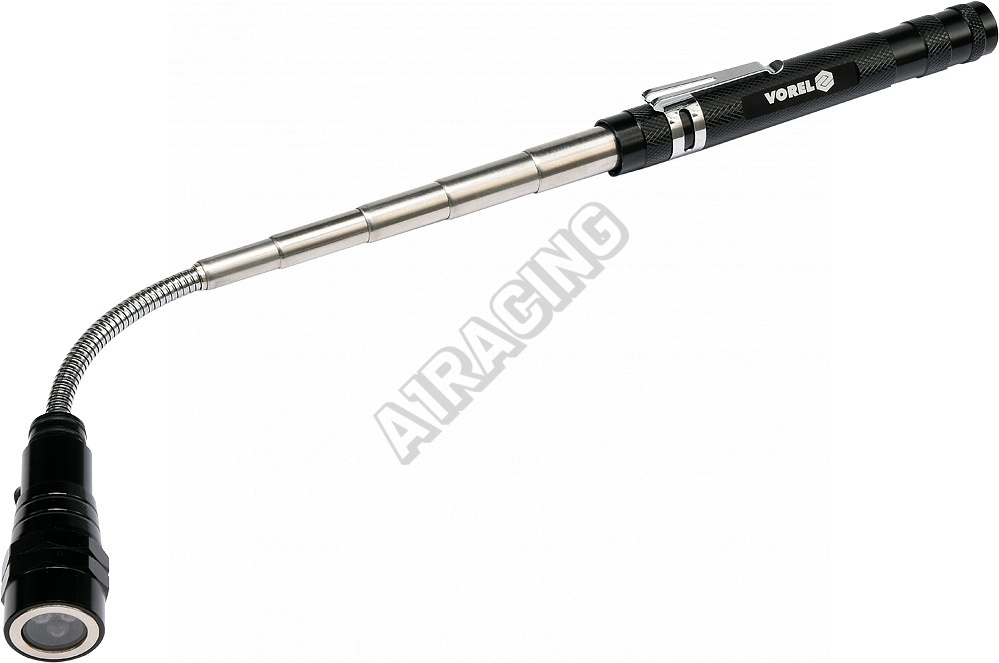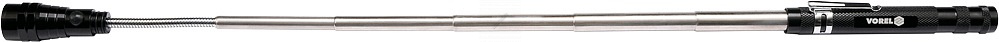 Celokovová teleskopická LED svítilna, s klipsem na opasek a s magnetem pro opevnění. Svítilna je v místě LED diod osazena magnetickým kroužkem, díky kterému lze snadno vytáhnout kovové předměty (např. šroubky) i z nepřístupných míst.