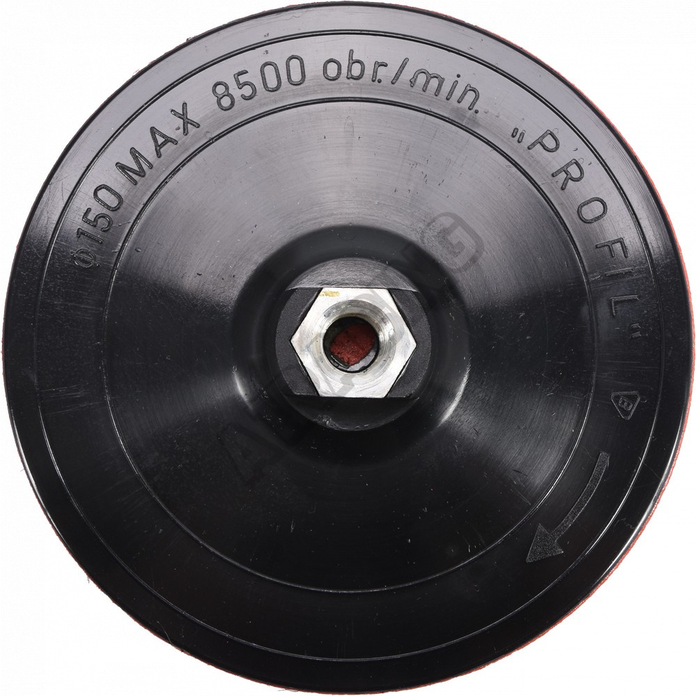 V pracovní části suchý zip pro rychlé a stabilní upevnění brusných kotoučů o průměru 150 mm.