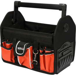 Praktická otevřená taška na nářadí zhotovená z odolného polyesteru 600D se zesíleným dnem odolným proti vlhkosti.