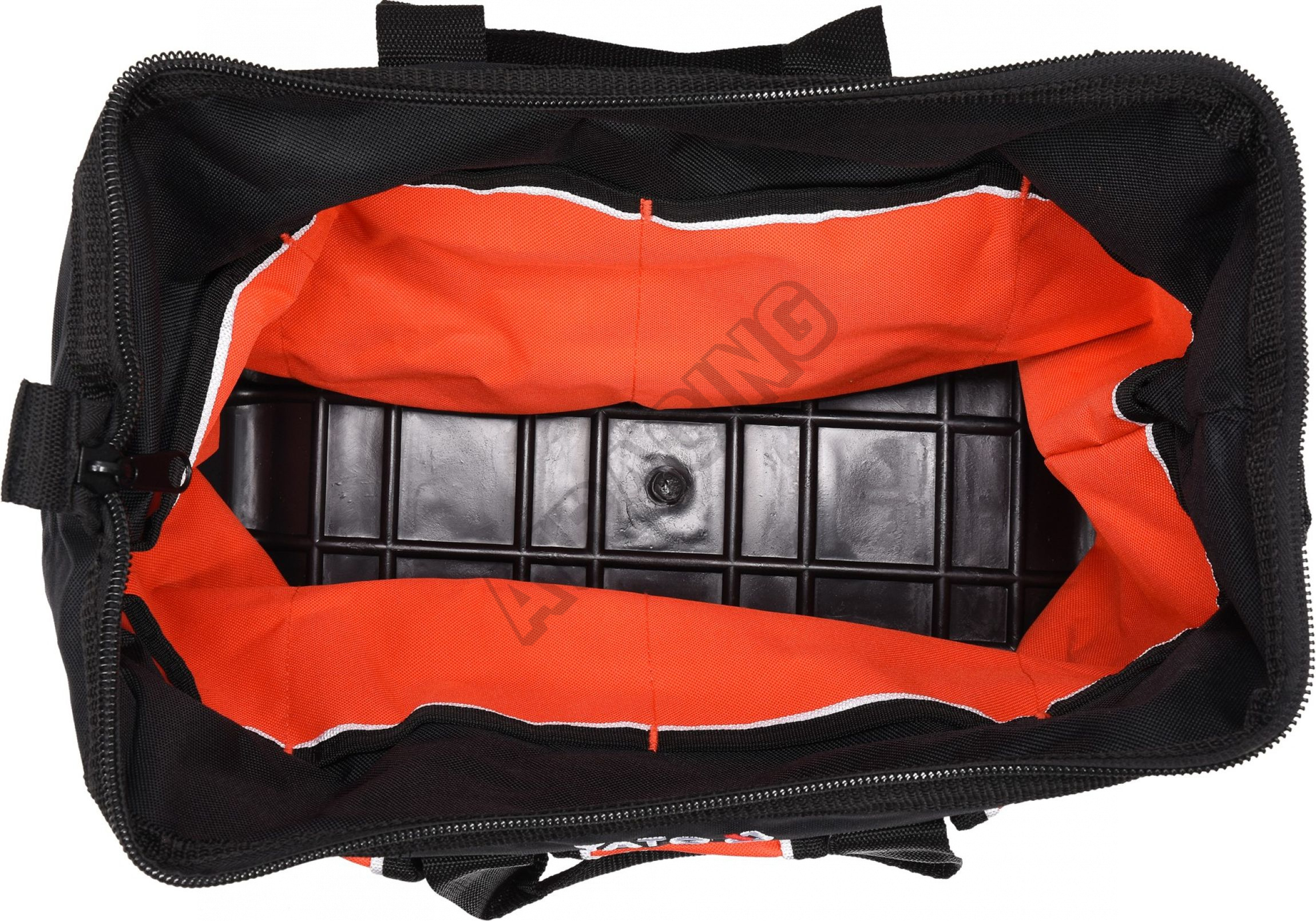 Velká, prostorná taška na nářadí zhotovená z odolného polyesteru 600D s voděodolným dnem z gumy.