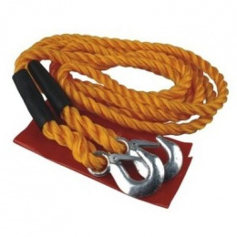 Tažné lano 4 m do 6500 kg - kovové oka Lano tažné s karabinami 6500 kg. Syntetické tažné lano u