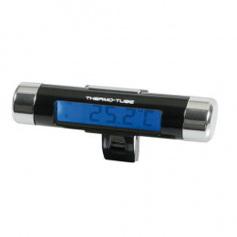 Micro digitální teploměr s modrým podsvětlením. Montáž pomocí oboustranně lepící pásky nebo klipsu. Včetně baterií. Rozměr: 83x22x22 mm.