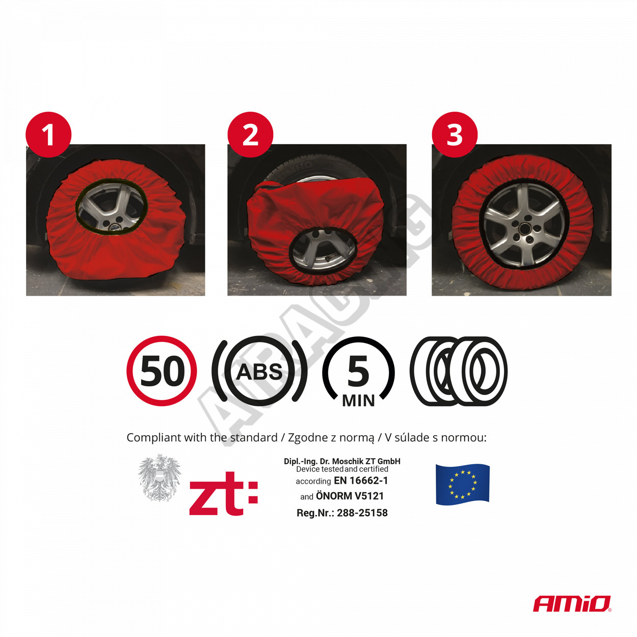 Textilní sněhové řetězy AMIO 3D velikost XS jsou profesionálním řešením zvyšujícím přilnavost vozide