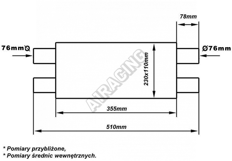 Všechny rozměry tlumiče jsou uvedeny na fotografii v galerii.