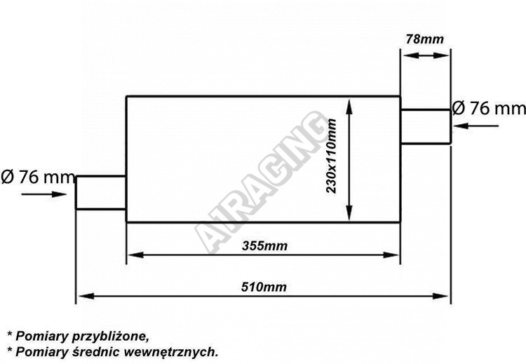 Všechny rozměry tlumiče jsou uvedeny na fotografii v galerii.