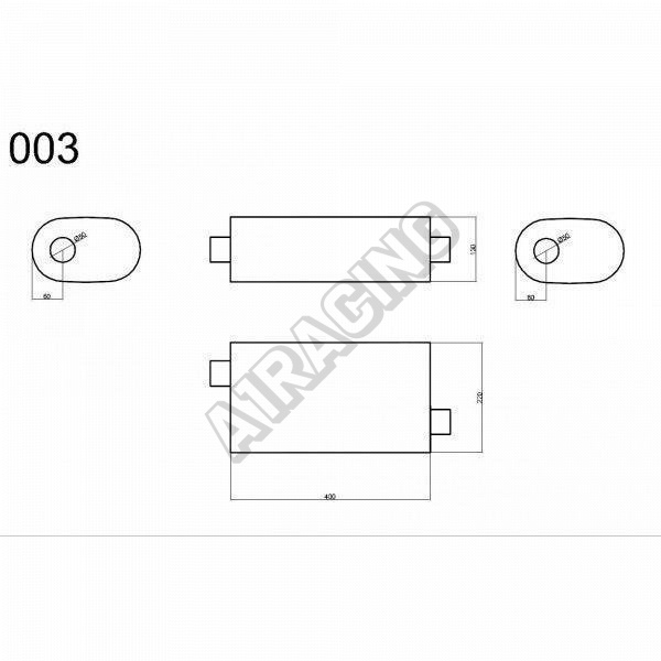 Model E003Tlumič s průchozí konstrukcí tlumený nerezovou ocelovou vlnou a skleněnou rohoží odolnou