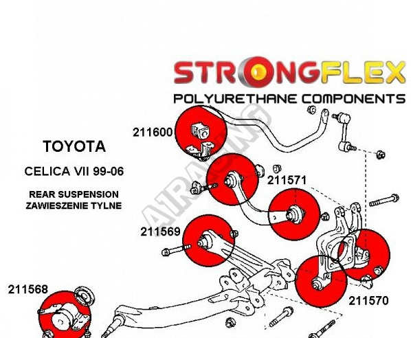 Toyota Celica VII 1999-06 StrongFlex sestava silentbloků jen pro zadní nápravu 14 ks obsahuje: