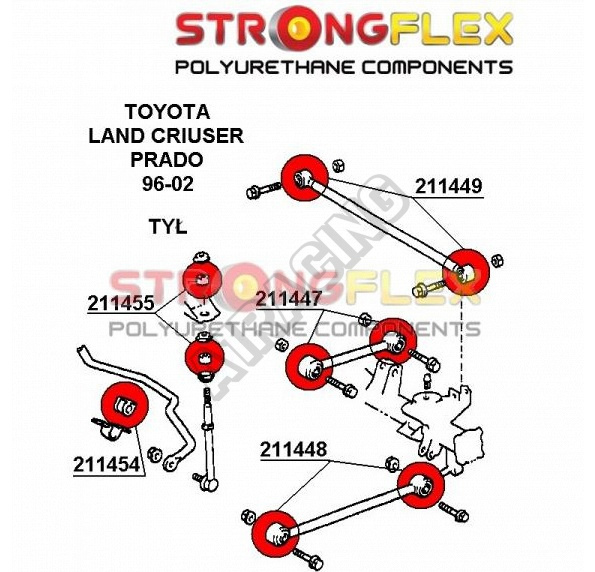 Toyota Land Cruiser StrongFlex sestava silentbloků jen pro zadní nápravu 14 ks obsahuje: