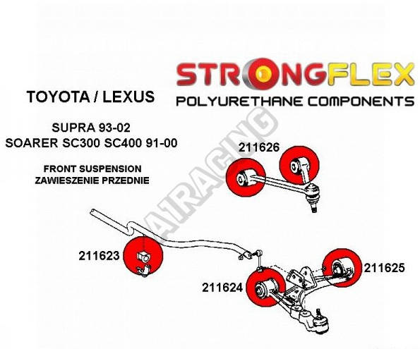 Toyota Supra StrongFlex (tvrdost 80ShA) kompletní sestava silentbloků na celé auto obsahuje :