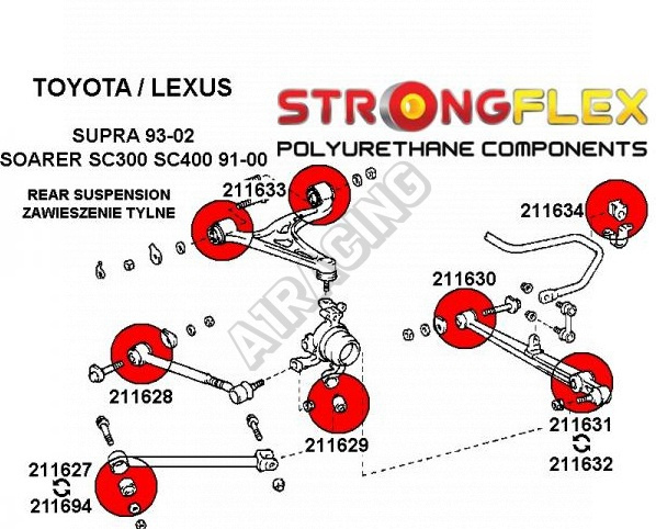 Toyota Supra StrongFlex sestava silentbloků jen pro zadní nápravu 16 ks obsahuje: