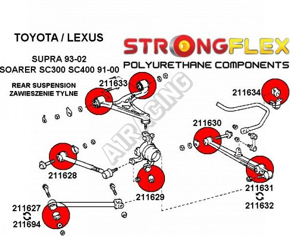 Toyota Supra StrongFlex Sport sestava silentbloků jen pro zadní nápravu 16 ks obsahuje: