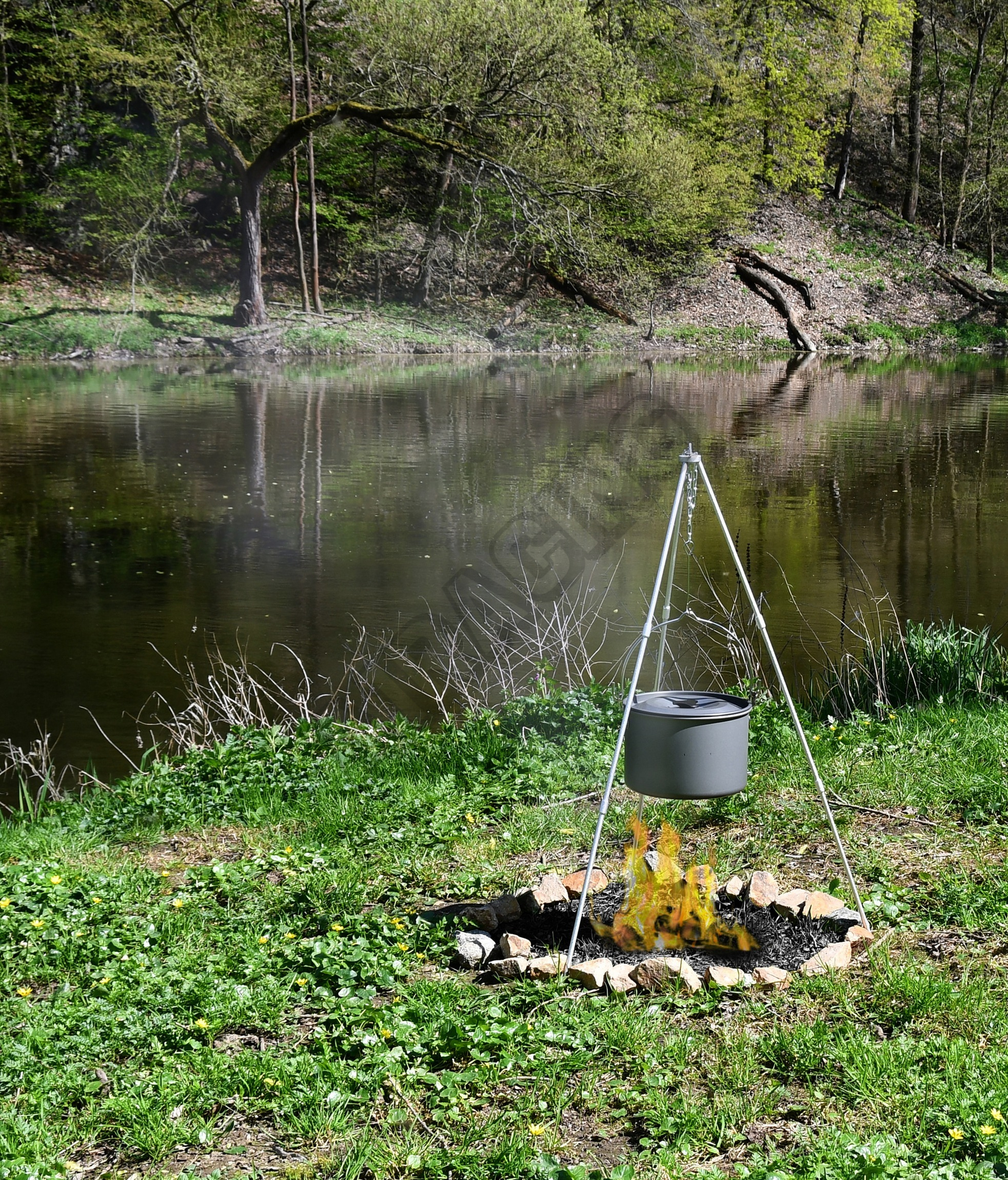 Praktický skládací tripod je výtečným doplňkem pro plynový vařič, ale i ohniště.