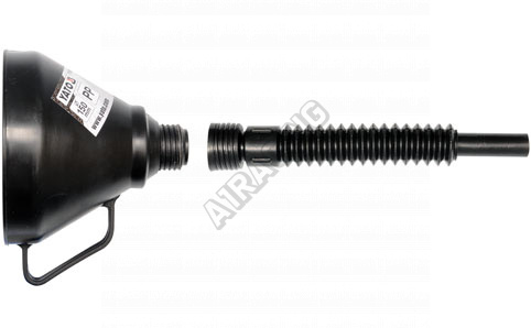 Kvalitní plastový, dvoudílný trychtýř s flexibilním hrdlem a sítkem proti nečistotám.