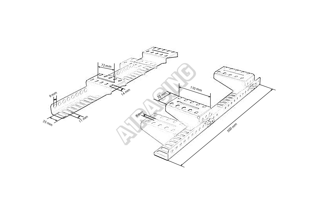 Upevnění jsou vyrobena z oceli o tloušťce 3 mm.