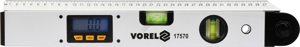 Tělo úhloměru je vyrobeno z hliníkového profilu opatřeného 2x libelami. S jejich pomocí můžeme přesně odměřit libolné úhly.