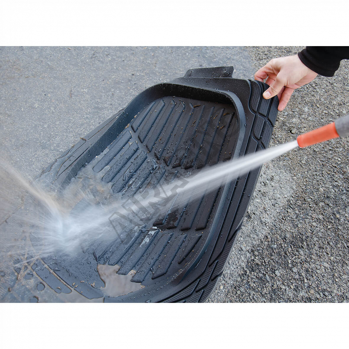 Masivní tvarované koberce nejen do špatného počasí v prémiové kvalitě určené hlavně pro americký trh, které snesou i velmi drsné podmínky použití. Rozměrově jsou použitelné skoro pro všechny modely aut. Rozměry máme uvedeny v galerii fotek. Díky řasení po celém obvodu koberce dokažete přesně zastřihnout váš požadovaný tvar. Díky hlubokému vyvýšenému okraji v koberci zamezíte, aby voda nebo jakékoli nečistoty se dostaly dál za hranu a zašpinily si tak interier auta. Následně je jednoduché koberce vyjmout a případnou vodu nebo nečistoty vyklepat nebo vyčistit. Spodní část díky výstupkům po celé ploše je neklouzavá a koberce se vám nebudou v autě posouvat. Na výběr máte tyto autokoberce v barvě černé, běžové a šedé.