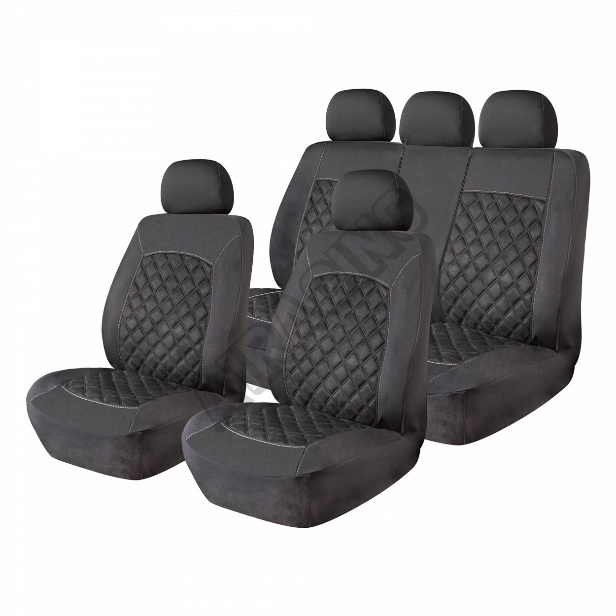 Kompletní sada potahů na přední a zadní sedadla osobního vozidla. Vyrobeno z odolného materiálu s vysokou odolností proti oděru a znečištění.
