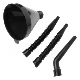 Univerzální černá flexibilní nálevka se sítkem, 4dílná, na palivo, kapaliny, vodu, 13 cm