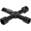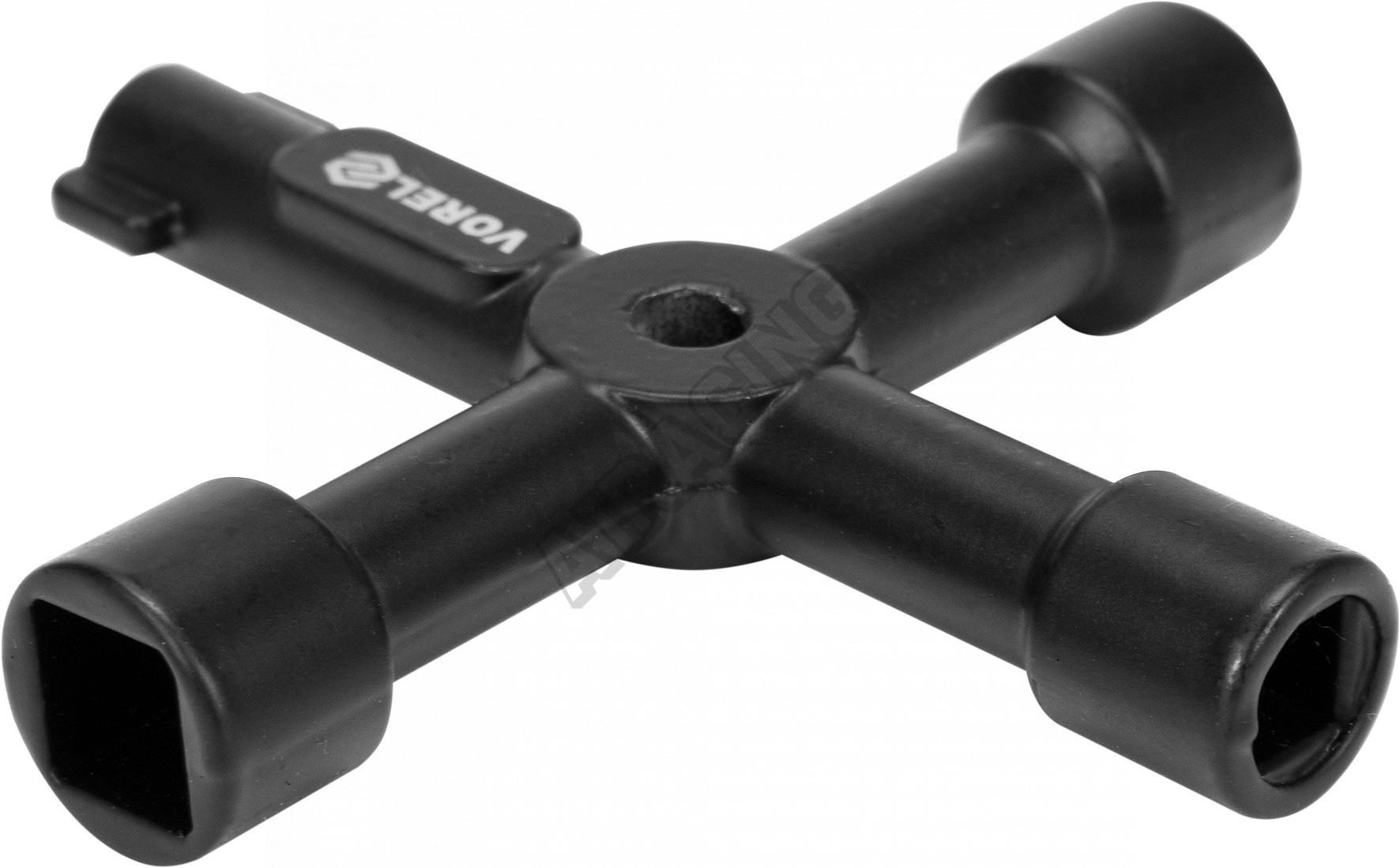 Přesná specifikace nástrojů čtverec 6 mm, čtverec 8 mm, trojúhelník 10 mm a kruh s křídly průměr 6 mm. Klíč je zhotoven z litiny na bázi zinku. Povrch je lakován černým práškováním.