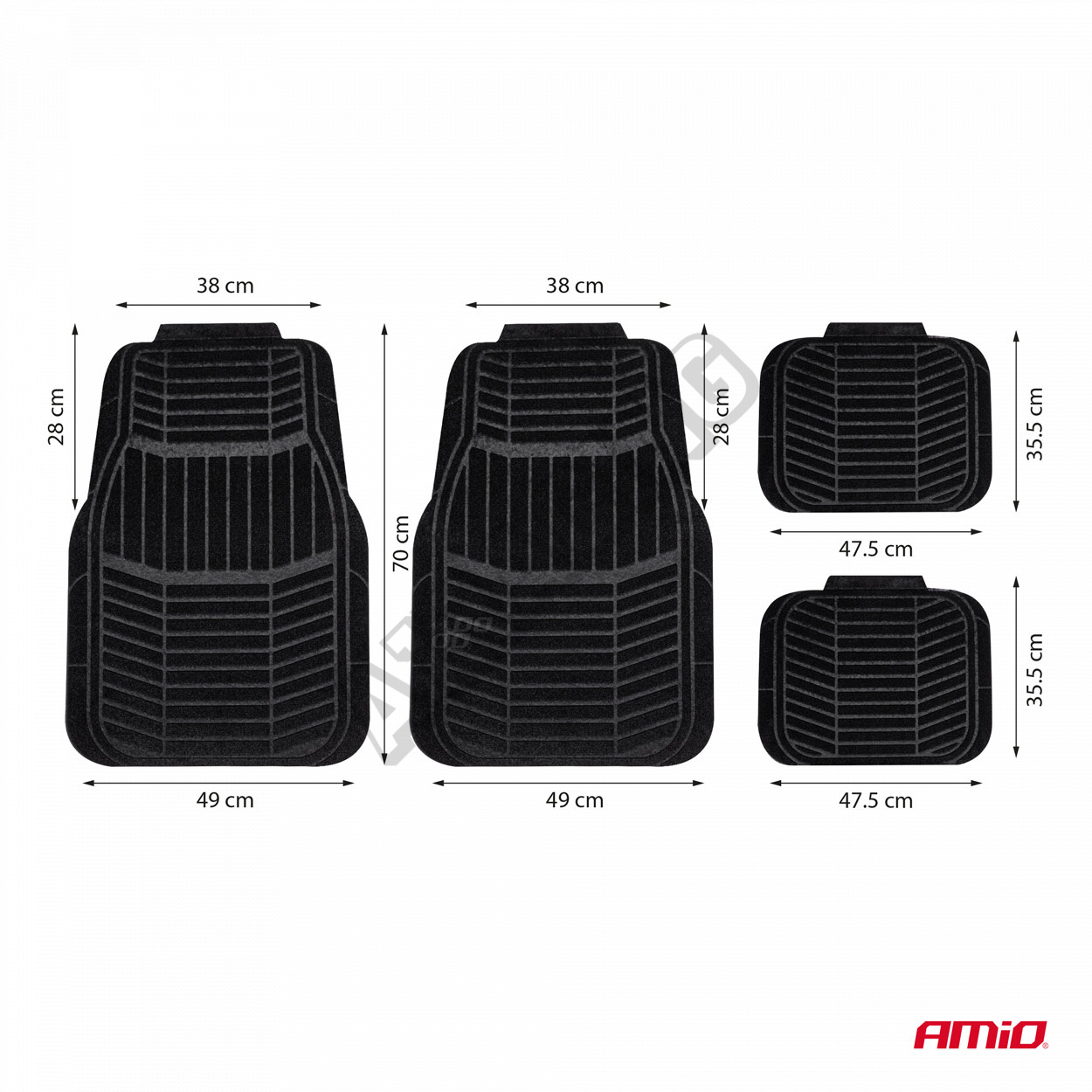 Univerzální sada textilních koberečků TCM-01 je praktickým řešením pro širokou škálu modelů osobních automobilů. Vyrobené z odolného materiálu, odolného proti oděru a snadno čistitelného, zajišťují estetický vzhled interiéru a účinnou ochranu podlahy vozidla.