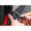 Lištu je možné zaříznout pod úhlem, aby byl výsledný efekt ještě lepší. Důkladně dotlačte. Nejlepší k tomu bude kousek látky, který náleží přesouvat po celé její délce se stejnou silou. Zabrání to také poškrábání lišty. Pro lepší přichycení v nejvíce namáhaných místech, můžete lištu přišroubovat přiloženými šroubky. Nelepte na zmrzlý nebo horký povrch. Okolní teplota pro lepení se doporučuje okolo 18°C. Během lepení se doporučuje nahřátí lišty teplým vzduchem. Zaručí to lepší elastičnost lišty. Po nalepení na karoserii vozu, nemyjte auto ručně ani v automatické myčce po dobu 24 hod.