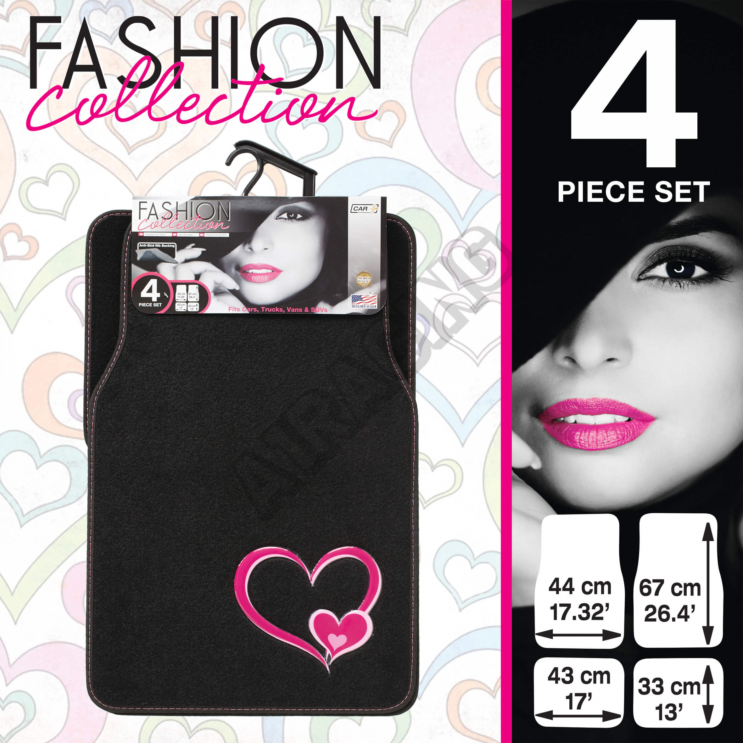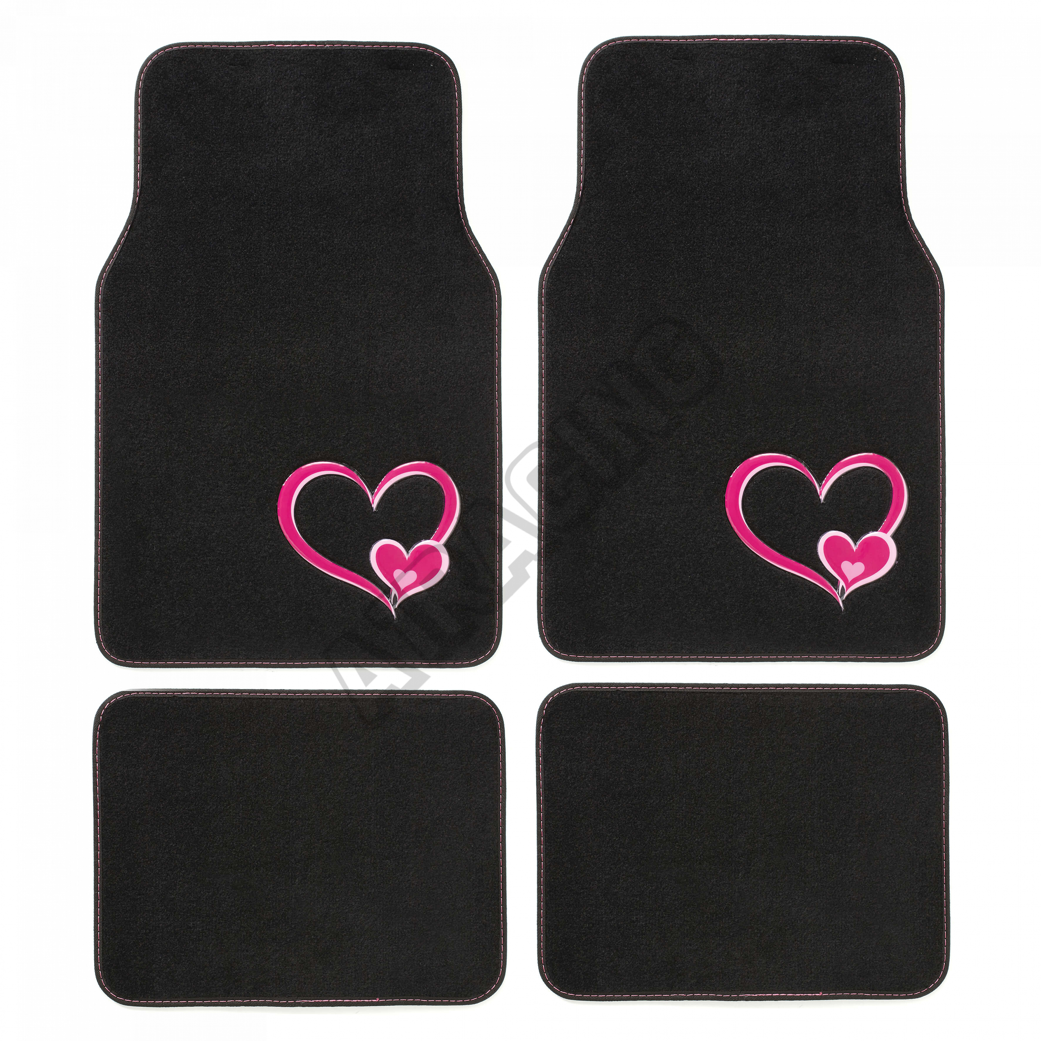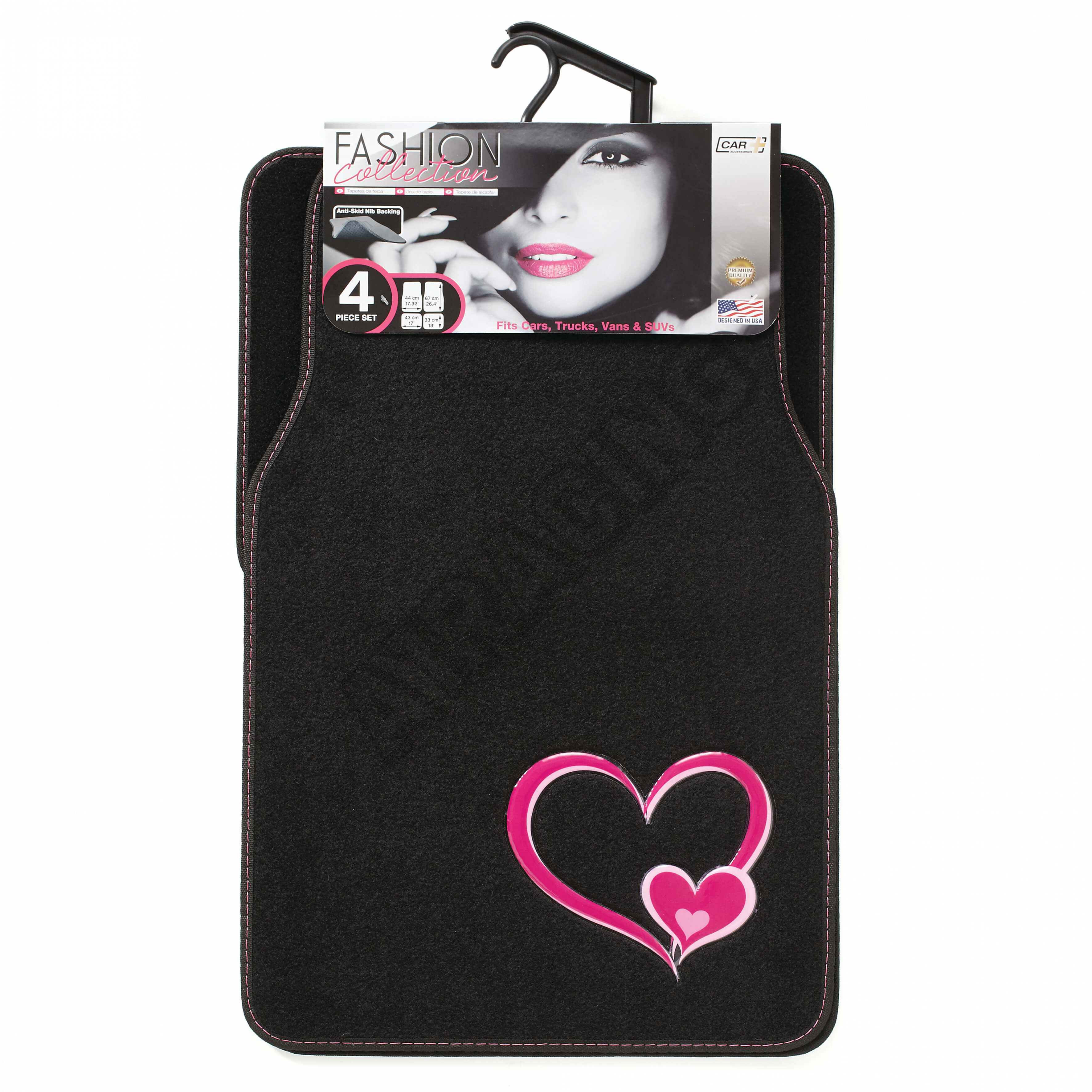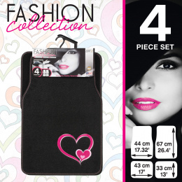 Kvalitní sada černých autokoberců s motivem srdce. Rozměry koberců jsou uvedeny na hlavní fotce. Kompletní sada 4 ks.