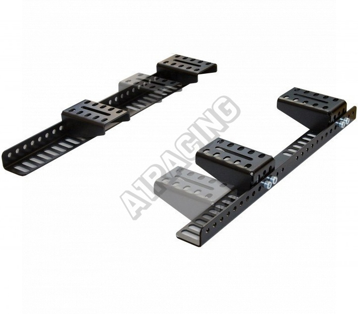 Nabízíme uchycení sportovní sedačky. Souprava obsahuje 2 úchyty, tj. Sadu pro jednu sedačku. Upevnění je jednoduché, spolehlivé z velmi silné konstrukce. Výrobek obsahuje montážní otvory. Upevňovací prvky jsou vyrobeny z oceli o tloušťce 3 mm. Projekt byl zaměřen na zlepšení nastavení sedačky, pro velký počet montážních otvorů se lépe najde výhodná poloha pro řidiče. Povrch je opatřen práškovým nátěrem v černé barvě.