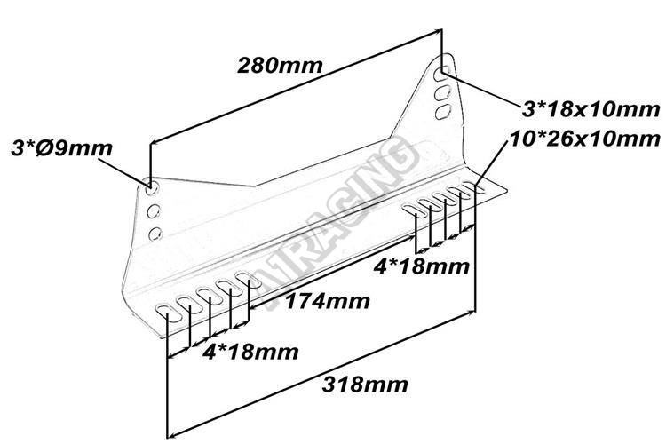 Rozteč šroubů kompatibilní s většinou skořepinových sedadel dostupných na trhu:
