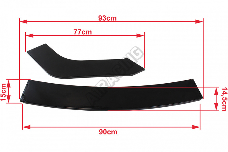 3dílný splitter pod přední nárazníkFunkce: Vysoce kvalitní materiál ABS, lehký, antikorozní, velmi